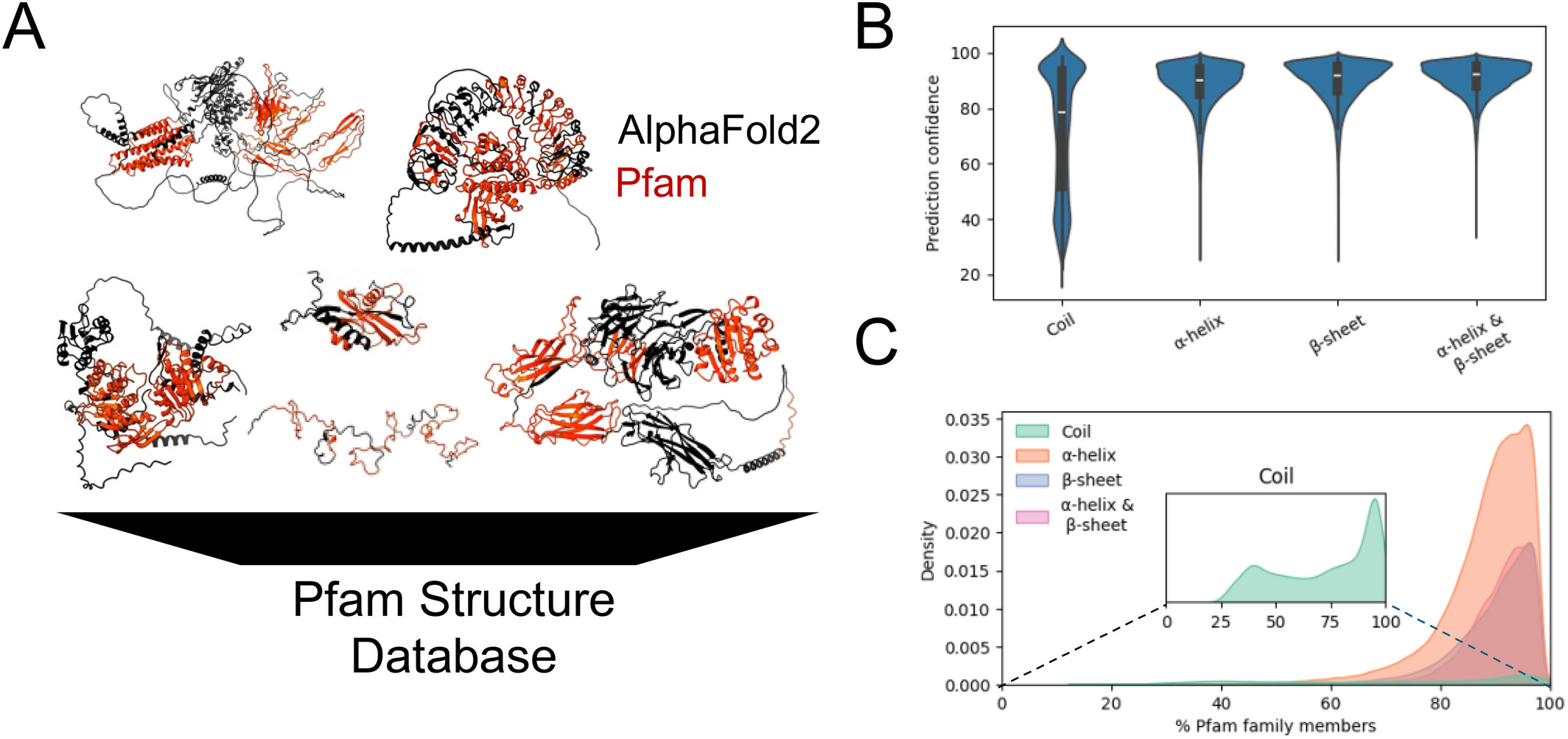 This work combines AlphaFold2-predicted structures with Pfam domain annotations to characterize structural variability within domain families. The PfamFold workflow extracts domain coordinates, computes structural features, and uses FoldSeek together with agglomerative clustering to group similar domain conformations—useful for interpreting domain diversity and for curation of Pfam families.